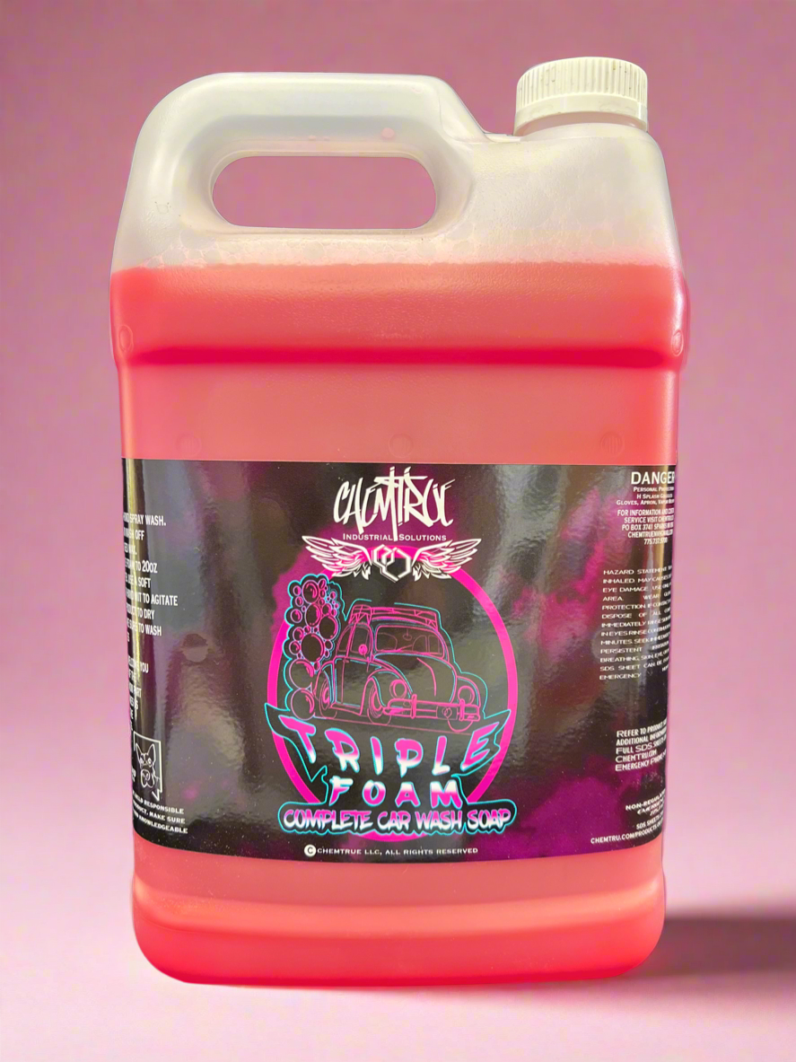 Triple Foam is a specialized vehicle cleaning product designed to create a rich, thick lather that adheres to the surface of the car, effectively lifting dirt, grime, and debris. Available in three different colors.